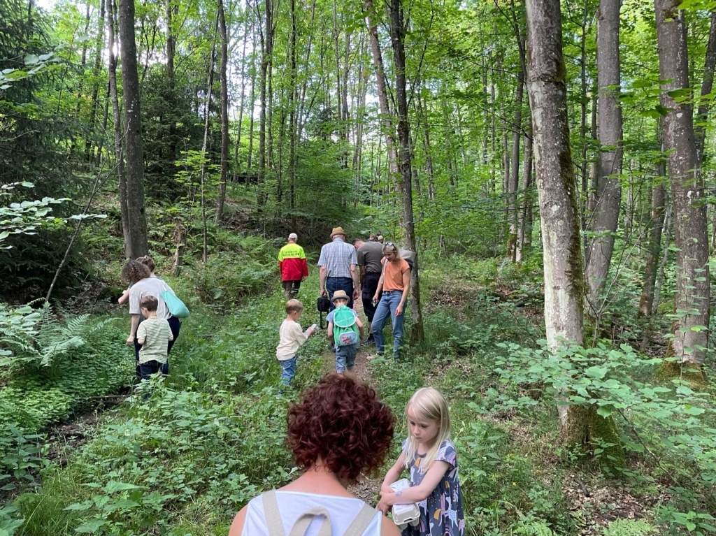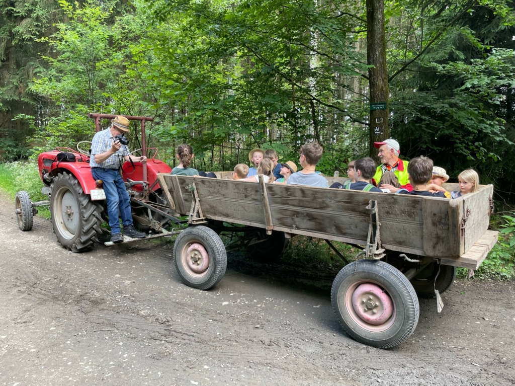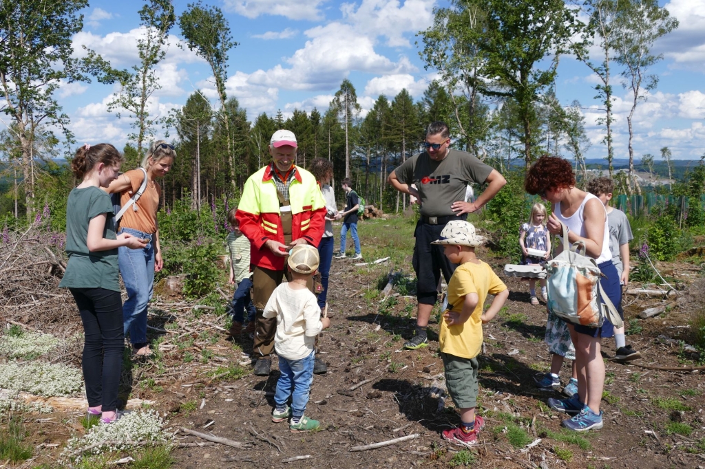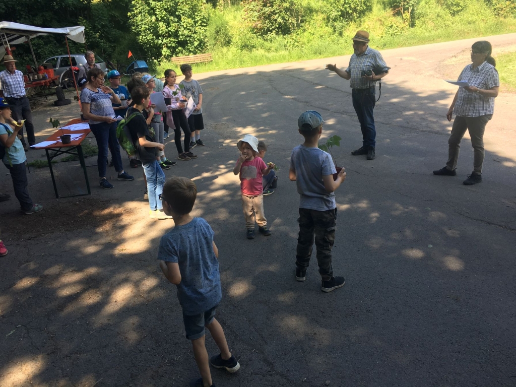 Mit Gabi Grehl, Jägerin und Obfrau für Öffentlichkeitsarbeit des Hegeringes Weidenau, und Heinz Holterhof, einem passionierten Forstwirt und Naturliebhaber, standen den Kindern gleich zwei Ansprechpartner zur Verfügung. Beide erwiesen sich als profunde Kenner der heimischen Pflanzenwelt, der Tiere in Wald und Feld und der hier vorkommenden Vögel. Beide verstanden es aber auch, ihre jungen Zuhörer zu begeistern, sie anzusprechen und zu Fragen und eigenen Erzählungen zu ermuntern. In der „rollenden Waldschule“ ging es vornehmlich um die Bestimmung der zahlreichen Wildtiere, um ihre Lebensgewohnheiten, um ihre Nahrungsquellen und um die Möglichkeiten, sie zu schützen. Viel Neues erfuhren dabei nicht nur die Kinder, sondern auch die Erwachsenen: Wer weiß schon, dass die Hasenmutter ihre Jungen auf verschiedene Stellen in der Wiese verteilt, wo sie dann von der Mutter nacheinander zum Säugen aufgesucht werden? So verbessert sie die Chancen ihrer Jungen, dem Fuchs oder anderen Raubtieren zu entgehen. Bei einer Walderkundung machten sich die Kinder vertraut mit den Merkmalen verschiedener Baumarten. Fundstücke wie Blüten, Früchte, Moose, Rindenstücke wurden von den Kindern gesammelt und besprochen. Zwischenzeitlich führte eine Fahrt mit dem Traktor und Anhänger zu einer Waldfläche, wo der Borkenkäfer den gesamten Fichtenbestand vernichtet hatte. Dort waren seitens der Waldgenossenschaft Neuanpflanzungen vorgenommen worden und es hatte sich eine interessante Vegetation herausgebildet. Als „Mitbringsel“ für zuhause pflanzten die Mädchen und Jungen unter Anleitung einen kleinen Ahornsetzling – zunächst in einen Topf, um dann später dafür einen geeigneten Standort zu finden. Belohnt wurde der erfolgreiche Besuch der „Waldschule“ mit einer besonderen Urkunde für alle Schülerinnen und Schüler. „Mit unserer Veranstaltung wollen wir dazu beitragen, den Kindern die Natur ein Stückchen näher zu bringen – das große Interesse der Mädchen und Jungen, ihr Eifer und ihre Begeisterung machen uns Mut, auf diesem Weg weiter zu gehen“ – so Max Pfennig vom Arbeitskreis. Den Abschluss der Aktion bildete ein gemeinsames Kaffeetrinken – nach dem „Unterricht“ in der „Schule“ und im Wald hatten sich Alt und Jung eine Stärkung redlich verdient!