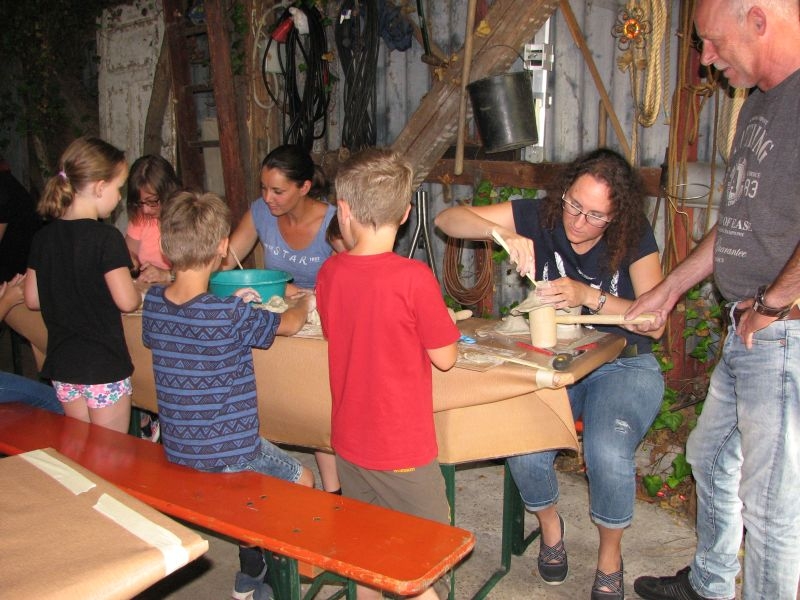 Am Samstag, dem 16. Juni 2018, fand unsere diesjährige „Aktion für Kinder“ statt. Dem Vorschlag, die Kindern des Dorfes zum Modellieren mit Ton einzuladen, war eine überaus gute Resonanz beschieden: Nach 24 Anmeldungen zu der Veranstaltung sahen wir uns veranlasst die Teilnehmerliste schließen, so dass wir um einige Absagen leider nicht umhin kamen.