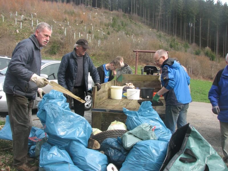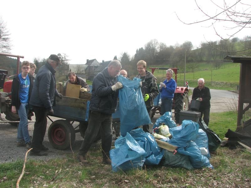 In Langenholdinghausen organisieren der Arbeitskreis Dorferneuerung und Dorfgeschichte sowie der örtliche Heimatverein die Reinigung von Wegen, Wiesen, Feld und Wald. Zwar konnten in der Vergangenheit die meisten „Altlasten“ an Unrat bereits aus der Landschaft entfernt werden, gleichwohl summieren sich achtlos weggeworfene Zeitungen, Trinkbecher, Plastiktüten oder Flaschen von einem Frühjahr zum anderen immer wieder zu ganzen Wagenladungen. Besonders schlimm trifft es die Umgebung der Verbindungsstraßen zwischen den Ortschaften: Die Entsorgung von Müll durch das geöffnete Autofenster scheint nach wie vor gängige Praxis zu sein. Dabei ist gerade die Reinigung der Ränder vielbefahrener Straßen nicht ungefährlich: Trotz des deutlich erkennbaren Fuhrwerks und der Helfer mit Warnwesten nehmen längst nicht alle Autofahrer den Fuß vom Gaspedal um ihre Geschwindigkeit wenigstens kurzzeitig zu vermindern. Etwas mehr Rücksicht wäre hier sicher angebracht!