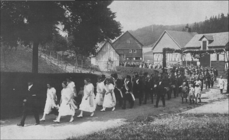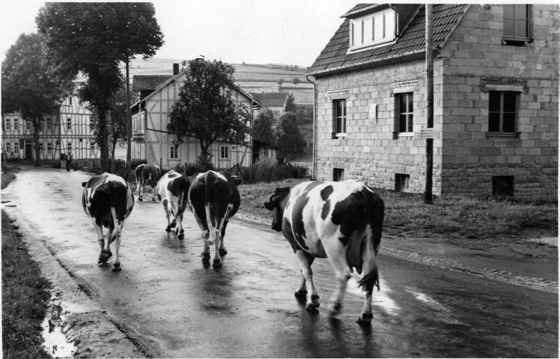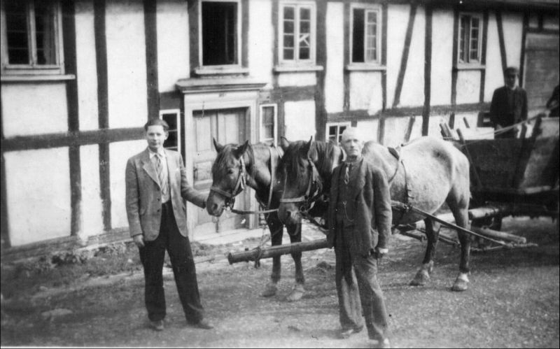 Am Anfang stand die Not der Nachkriegsjahre, der politische Neuanfang und der knappe Wohnraum, der mit Evakuierten aus den Städten und Ostvertriebenen geteilt werden musste. So kamen im November 1945 auf 398 ortsansässige Bewohner 92 „Evakuierte“, die zumeist durch Bombenangriffe ihre Wohnungen verloren hatten, dazu noch 27 ehemalige Wehrmachtsangehörige - z. B. Männer aus Litauen - denen die Rückkehr nach Hause für immer verwehrt war. In der ersten Hälfte des darauffolgenden Jahres – so heißt es in der damals geführten Schulchronik – „setzte dann der Strom der Ostvertriebenen ein, die von den Polen aus ihrer Heimat ausgewiesen worden waren“. Im September 1946 wohnten in den 40 Haushaltungen des Dorfes 120 Ostvertriebene und Evakuierte. Nachdem im Dorf seit 1938 kein einziges neues Wohnhaus mehr errichtet worden war, setzte ab 1950 eine rege Bautätigkeit ein: Bis 1965 entstanden insbesondere in den jüngeren Ortsteilen gut 35 Häuser, z. T. noch mit wiederverwendeten Baumaterialien und ausschließlich in Handarbeit. Auch das Ausheben der Baugruben und Fundamentgräben erfolgte allein mit Hacke und Schaufel. Die Landwirtschaft des Dorfes verzeichnete ab Mitte der 1950er Jahre eine bis dahin nicht gekannte Mechanisierungswelle: Während 1950 noch 9 Pferde, 7 Ochsen und 34 Kuhgespanne vor Wagen und Erntemaschinen gingen, waren Ende der 1960er Jahre 15 Traktoren und acht Einachsschlepper auf den Voll- und Nebenerwerbshöfen im Einsatz. Ganz neue landwirtschaftliche Strukturen mit drei ausgesiedelten Einzelhofstellen erbrachte die in den 1960er Jahren durchgeführte Flurbereinigung, dazu ein ganz neues Netz von Wirtschaftswegen und eine völlige Veränderung der Flur, die zuvor von kleinen Parzellen und einem vielfältigem Anbau geprägt war. Eindrucksvoll dokumentiert werden diese ereignisreichen Jahre durch eine Sammlung von mehr als 300 Fotos. Knapp die Hälfte davon steht dem Arbeitskreis Dorferneuerung und Dorfgeschichte erst seit kurzem zur Verfügung. Fotografiert wurden die „Neuzugänge“ im Bildarchiv des Arbeitskreises von Rudolf Geller aus Siegen. Nachdem seine Wohnung in der Nähe des Bahnhofes am 2. Februar 1944 während eines Fliegerangriffs auf Siegen durch eine Luftmine unbewohnbar geworden war, fand er mit seiner Familie in Langenholdinghausen an der Olperstraße eine neue Unterkunft. Hier lebten die Eheleute Geller mit ihren drei Söhnen bis Ende 1954 - in zwei Räumen im Obergeschoss des Einfamilienhauses. Als leidenschaftlicher Fotograf dokumentierte Rudolf Geller in den folgenden Jahren das Dorf und das örtliche Leben in einer Vielzahl qualitativ hochwertiger Aufnahmen, die heute als wertvolle Zeitzeugen das von Ernst-Otto Ohrndorf geführte Ortsarchiv bereichern. Zur Verfügung gestellt wurden die Bilder dem Arbeitskreis Dorferneuerung von Eberhard Geller aus Gosenbach, dem Sohn von Rudolf Geller. Bei der ersten öffentlichen Vorstellung des „Bilderbogens“ unter dem Titel „ Als unsere Eltern und Großeltern noch Kinder waren … – Langenholdinghausen in den 1940er und 1950er Jahren“ war Eberhard Geller mit zugegen. Auch von älteren Mitbürgerinnen und Mitbürgern wurden die Bilder mit größter Aufmerksamkeit und vor allem von den noch jüngeren Teilnehmern mit Erstaunen verfolgt. Wer erinnert sich schon noch an den „Mühlengraben“ im Holzklautal, dessen Wasservorrat dereinst das Mühlenrad trieb? Und wer kann sich noch vorstellen, dass über die heute vielbefahrene Olper Straße dereinst die Kühe von der Weide ganz gemächlich zum heimatlichen Stall getrieben wurden? Aufgrund des großen Interesses an den Bildern und Ausführungen denkt der Arbeitskreis darüber nach, den Vortrag in absehbarer Zeit zu wiederholen.
