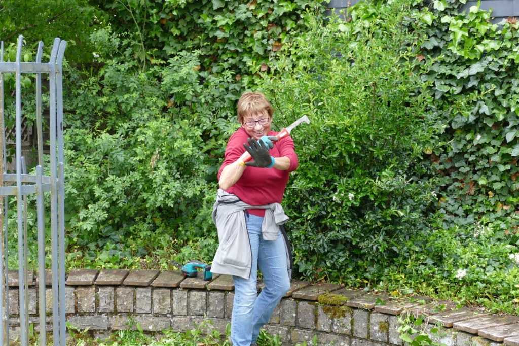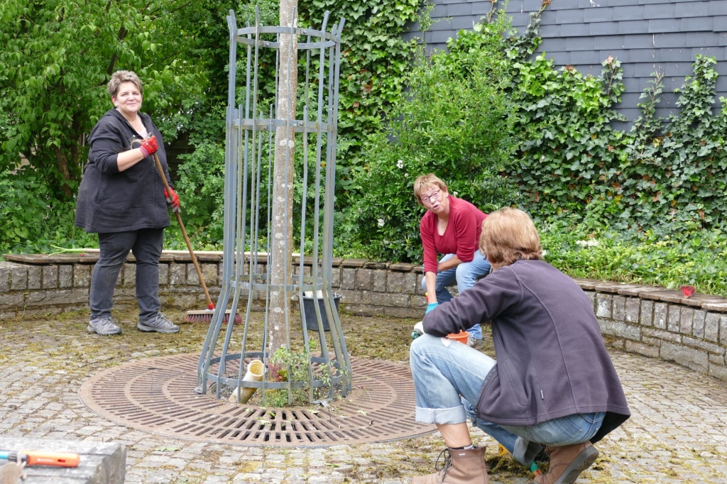 Auch wenn der Arbeitskreis mit seinen sonst im Jahresablauf üblichen Aktivitäten infolge der Pandemie in den letzten Monaten weitgehend pausierte Gras und Unkraut nehmen auf den Corona-Virus keinerlei Rücksicht: Am Dienstag, dem 02. Juni 2020, beseitigten sechs Helferinnen und Helfer des Arbeitskreises das Unkraut rund um den Glockenturm am Altenberg, es wurde Erde in den Beeten aufgefüllt und erste Anstreicharbeiten am Gebälk des Turmes ausgeführt.