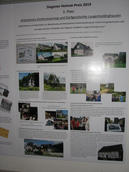 Um den von der Stadt Siegen ausgelobten Heimatpreis bewarb sich unser Arbeitskreis gleich mit zwei Initiativen bzw. Maßnahmen: Zum einen mit unseren…„Maßnahmen und Aktivitäten zur Bewahrung und behutsamen Fortentwicklung des historisch gewachsenen und charakteristischen Ortsbildes des Siegener Stadtteiles Langenholdinghausen“,
