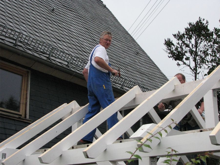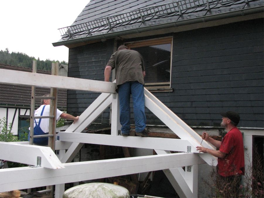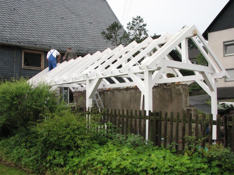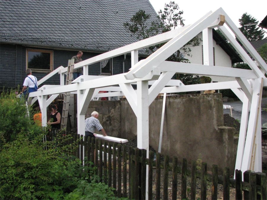 …Vielerorts sprießen sie aus dem Boden – die Carports als einfacher aber wirkungsvoller Schutz des Autos vor Regen und Schnee und zugefrorenen Scheiben. Dass auch Carports durchaus individuell und dennoch dorfgerecht gestaltet werden können, zeigt ein derartiger Neubau in der Holdinghauser Straße. Mitglieder des Arbeitskreises standen dem Bauherrn bei der Planung und Ausführung des Projekts zur Seite.