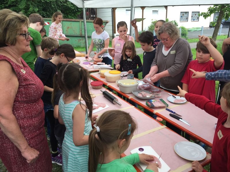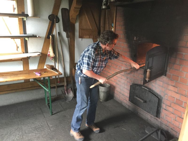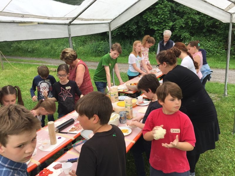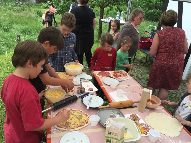 Mit Eifer und Geschick wurde der Teig portioniert und ausgerollt, vielfältige Zutaten wie Paprika und Käse vorbereitet und mit viel Phantasie zu ganz besonderen „Pizzakreationen“ zusammengestellt. Im inzwischen mit Schanzen vorgeheizten Ofen konnten diese dann gebacken und anschließend gemeinsam verzehrt werden. Der guten Stimmung rund um das Backhaus tat auch der zeitweilig einsetzende Regen keinen Abbruch. Veranstaltungen für Kinder haben im Jahresprogramm des Arbeitskreises Dorferneuerung und Dorfgeschichte ihren festen Platz. Ob es darum geht den Naturschutz zu fördern, die Verbindung zum Dorf und seiner Geschichte zu fördern oder sich in handwerkliche Fähigkeiten zu üben – auf die Kinder und Jugendlichen kann sich der Arbeitskreis verlassen!