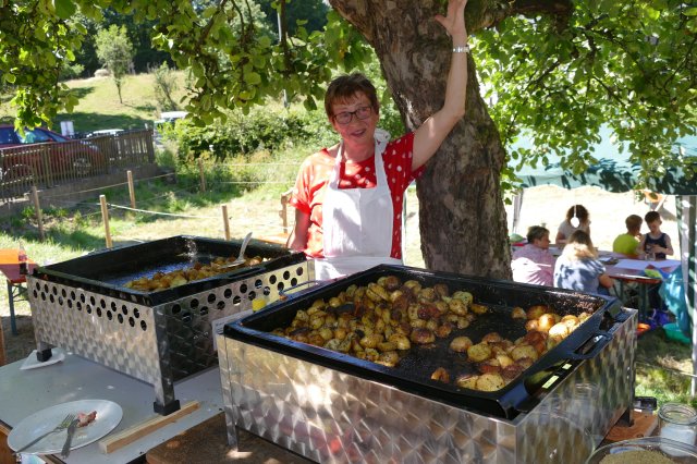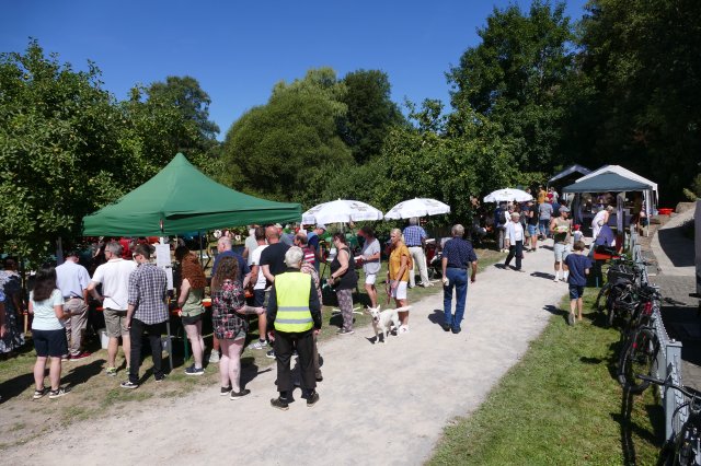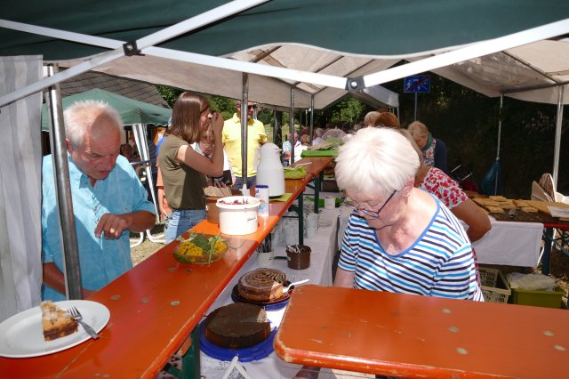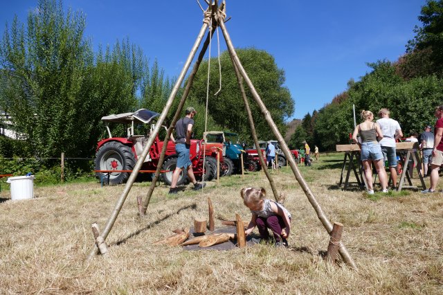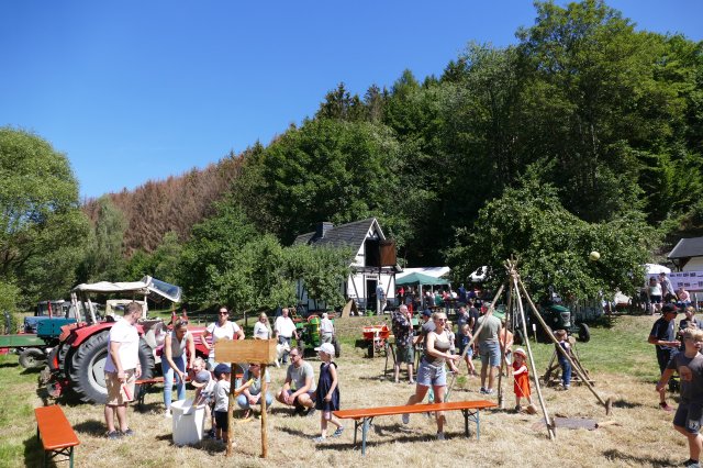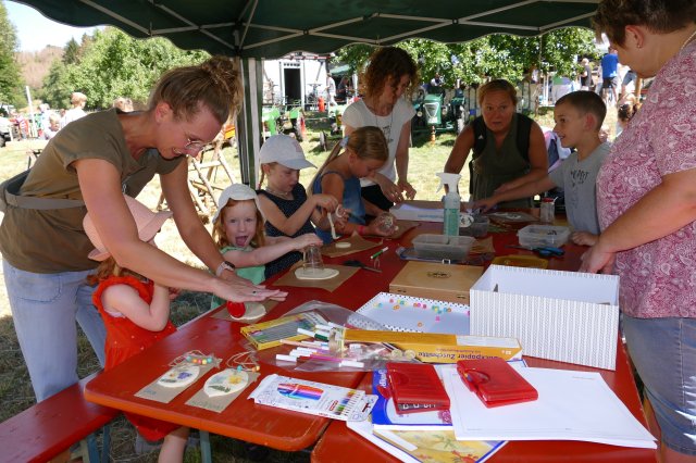 Nach zwei Jahren pandemiebedingter Zwangspause erwies sich das 21. Backesfest des Arbeitskreises Dorferneuerung und Dorfgeschichte wieder als Besuchermagnet und Fest für die ganze Familie: Ob beim Kegeln, bei Wurfspielen, am Nagelbalken, am Sägebock oder beim Modellieren von Kunstwerken aus Salzteig und Blütenblättern am gut frequentierten Mal- und Basteltisch  bei den jungen Gäste kam keinerlei Langeweile auf.