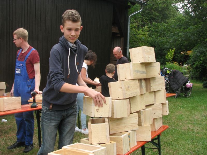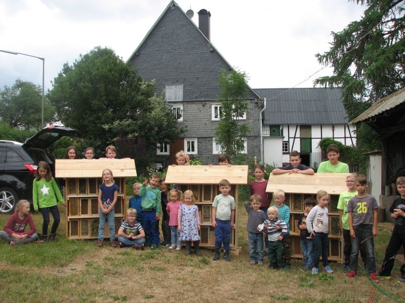 25 Mädchen und Jungen bauten gemeinsam „Hotels für Insekten“