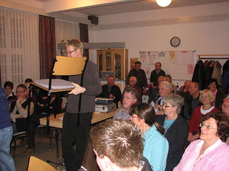 Unter der Fragestellung „Rückschritt oder Fortschritt ?“ ging es danach um das Holzrücken mit dem Pferd „Olek“ in einem Fichtenbestand der Haubergsgenossenschaft am „Goldseifen“. Gezeigt wurde das ungewöhnliche Zusammenspiel von Mensch, Tier und Maschine bei der Holzwerbung im Forst - eine Verfahrensweise, die Anlass gibt für mancherlei Überlegung zu ihren ökologischen, aber auch wirtschaftlichen Vorzügen. „Irgendwie tut es schon weh …“ lautete schließlich der Titel eines Filmbeitrages, der sich mit dem Abschied von der Milchviehhaltung bei „Kolwe“ befasste. Der Hof „Kolwe“ repräsentiert mehr als 700 Jahre Dorfgeschichte, ebenso lang wurden dort Kühe gehalten. Vor nunmehr einem Jahr verließ die letzte Kuh den Stall. Die nach jedem Film angebotene Möglichkeit zu Nachfragen und Anmerkungen wurde vom Publikum intensiv genutzt, so dass sich ein reger Gedankenaustausch entspann. Namens des Arbeitskreises richtete Ernst-Otto Ohrndorf seinen besonderen Dank an die Mitglieder der im Jahre 2002 gegründete „Video- Arbeitsgemeinschaft Hollekusse“. Ohne das Engagement der „Filmemacher“ Dr. Hartmut Simon, Dr. Dietmar Ehrhardt und Rolf Spicker habe diese Veranstaltung nicht stattfinden können. Die Video-AG hat es sich zur Aufgabe gemacht, das „visuelle“ Gedächtnis von Langenholdinghausen durch Videoproduktionen zu ergänzen und das zur Dorfgeschichte vorhandene Bild- und Tonmaterial zu archivieren. Derzeit werden von der Video-AG bereits mehrere Produktionen angeboten, neben den schon genannten Filmen sind dies eine umfassende Dokumentation zur 725 Jahrfeier des Dorfes, ein Film über eine „historische Schulstunde“ und eine DVD mit der gesamten, in Buchform dreibändigen Chronik des Dorfes. Auf die zukünftige Arbeit der Video-AG werden in Langenholdinghausen große Hoffnungen gesetzt: „Langenholdinghausen hat im Blick auf das kulturelle Erbe, auf Handwerk, Landwirtschaft und soziales Leben vieles zu bieten, was es verdient in Bild und Ton festgehalten zu werden. Verbunden mit den Erfahrungen unserer Videofilmer, ihrem Gespür für das aufzuzeichnende Geschehen und ihrer guten technischen Ausstattung erwächst daraus ein Potential, dass unbedingt genutzt werden sollte“ – so Ernst-Otto Ohrndorf vom Arbeitskreis Dorferneuerung. Vom Publikum des Filmabends gab es bereits erste Vorschläge für weitere Aktivitäten der örtlichen Filmemacher.