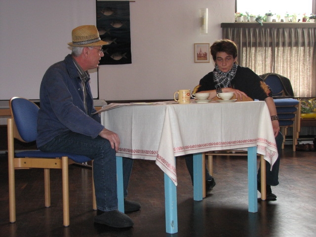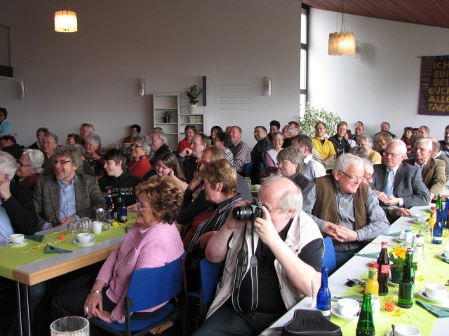 Es folgten Ausführungen von Ernst-Otto Ohrndorf zur Geschichte des „Sejjerlänner Platt“ als einer hochdeutschen Mundart, zur Bedeutung dieser Mundart als Kulturgut, als Teil dörflicher Identität und als Contrapunkt zu einer gesellschaftlichen Uniformität und Gleichmacherei. Mundart schaffe Unterscheidung, Originalität und gleichzeitig Gemeinschaft und Vertrauen. Dabei könne gerade auch die Mundart für eine Mehrsprachigkeit stehen, durch die die Entwicklung eines Kindes gefördert und keineswegs behindert werde – so Ohrndorf. Durch das mit der Sketchfolge „Szenen aus dem Eheleben“, Lied- und Textbeiträgen abwechslungsreich gestaltete Programm führten Annemarie Gieseler und Kurt Pfennig. Zwischendurch bestand die Möglichkeit zu gemeinsamen Gesprächen und zur Stärkung bei Kaffee und selbstgebackenem Kuchen. Danach erfuhren die Gäste Wissenswertes über die Herkunft des Wortes „Magolves“, die Siegerländer Bezeichnung für den Eichelhäher. Schon in einer Beschreibung aus dem 13. Jahrhundert - so Kurt Pfennig in seinem interessanten Beitrag - wird der geschwätzige Vogel „Markolfus“ genannt, dies in Anlehnung an eine schon vor über 1000 Jahren in ganz Europa kursierende Geschichte von einem wortgewandten und streitbaren Bauern namens Markolf. Als Gegenspieler von König Salomon wurde der schlaue und listige Maulheld auch noch im 16.Jahrhundert gerne von Komödianten auf Volksfesten dargestellt. Bis heute ist er im Siegerland der Namenspatron für den frechen und bunten Eichelhäher geblieben. Anschließend nahmen vier jüngere Gäste die Gelegenheit wahr, vor einem sachkundigen Auditorium und einem einer mit „Ortshonoratioren“ hochkarätig besetzten Prüfungskommission die „dörfliche Reifeprüfung“ abzulegen, einer Art lokaler Gegenreaktion auf das jetzt eingeführte Zentralabitur. Mit gutem Erfolg wussten sich die Absolventen in den Prüfungsgebieten Flora und Fauna des Siegerlandes, Werkzeuge und Gegenstände aus der Land- und Hauswirtschaft, Allgemeinbildung des Siegerländers oder im Spezialgebiet Flur- und Hausnamen in „Hollekusse“ zu behaupten. Bei „plattdeutschen Schlagern“ und beim Singen traditioneller plattdeutscher Liedern mit Akkordeonbegleitung kamen schließlich auch die Sangesfreunde auf ihre Kosten. Die Erfahrungen mit diesem ersten Mundartnachmittag sind für den Arbeitskreis Dorferneuerung und Dorfgeschichte sicher Grund genug, um eine ähnliche Veranstaltung folgen zu lassen.
