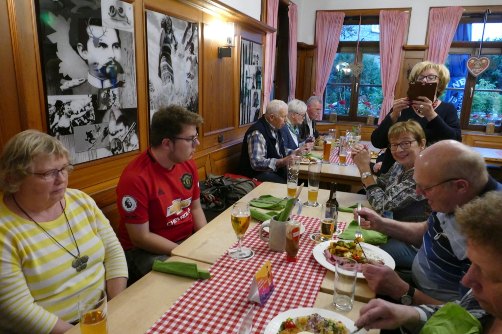 Obwohl schon zu herbstlicher Jahreszeit, zeigten sich Beete und Rabatte des Parks in herrlicher Blumenpracht. Sehr angetan waren die Mitglieder der Gruppe auch vom neu eingerichteten Spielplatz und den sich den Kindern dort bietenden Möglichkeiten. Anschließend wurde in den Schloss-Stuben gemeinsam zu Abend gegessen, wo die Veranstaltung in zwangloser Runde ausklang.