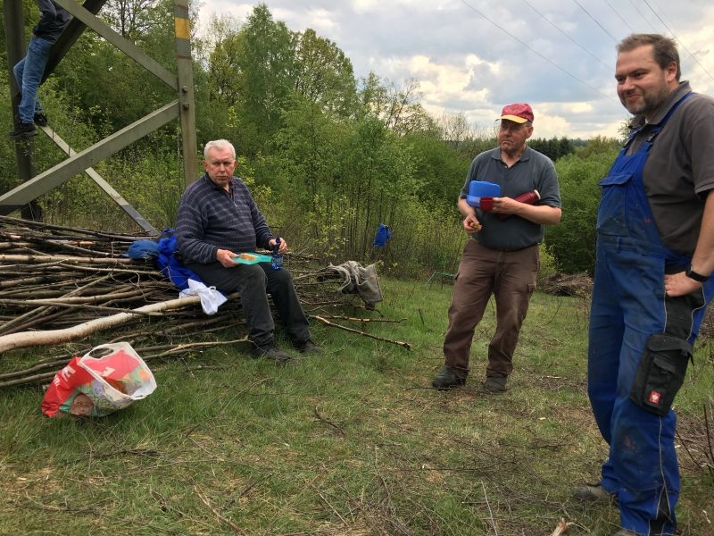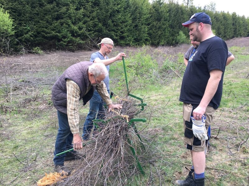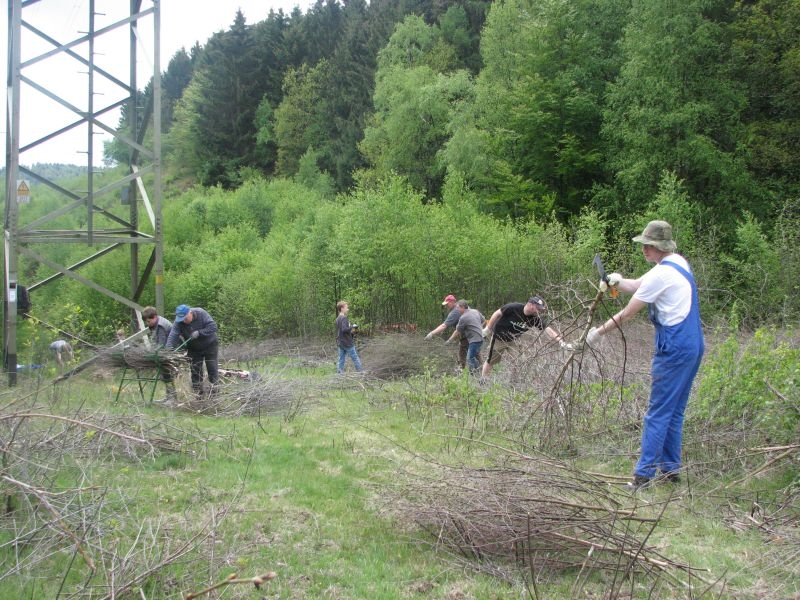 Zum diesjährigen gemeinsamen Schanzenmachen trafen sich die Mitglieder des Arbeitskreises am Samstag, dem 18. Mai 2019, um 13.00 Uhr bei „Kolwe“, um von dort aus gemeinsam in die „Lembich“ zu fahren, wo unter der Hochspannungsleitung das bereits geschnittene „Geäst“ auf sie wartete.