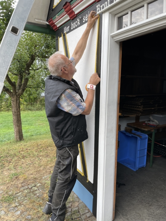 Während unsere Flächen rund um den Backes, den Glockenturm und an der Sitzecke bei Hürschdersch von unseren Mitgliedern je nach Bedarf gemäht werden, bedürfen auch unsere Baulichkeiten immer mal wieder einer Pflege und Instandsetzung: