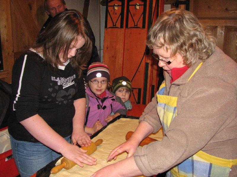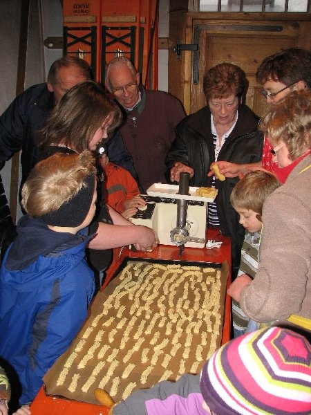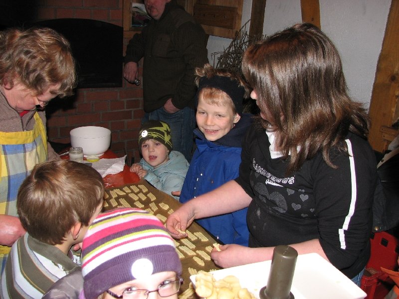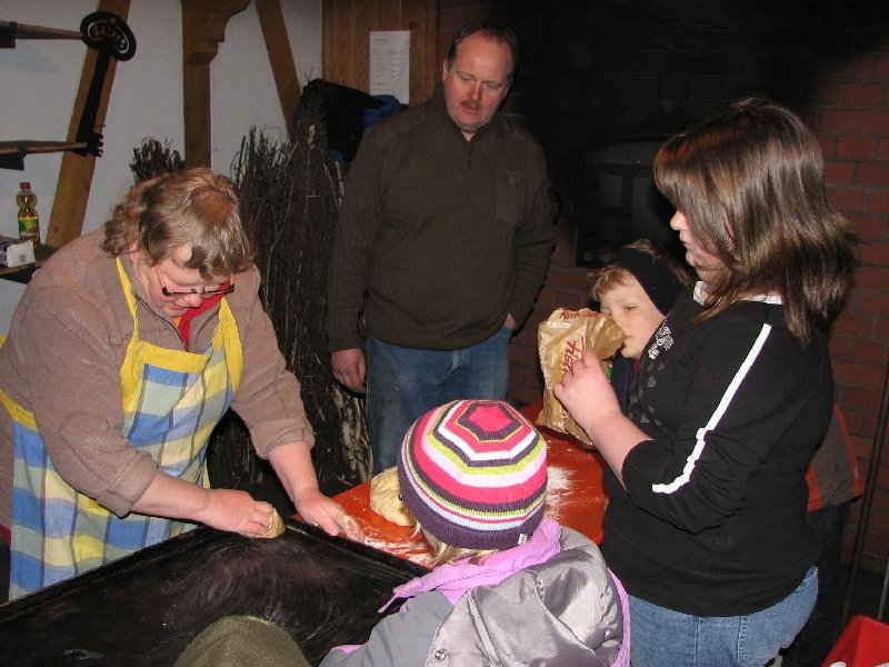 „In der Weihnachtsbäckerei …“ – an das Lied von Rolf Zuckowski fühlten sich all jene erinnert, die am 5. Dezember 2009 das Backhaus am Zinnwald aufsuchten. Jung und alt waren gleichermaßen begeistert dabei, Teig in den Fleischwolf zu geben und die Plätzchen auf den großen schwarzen Backblechen zu „positionieren“.