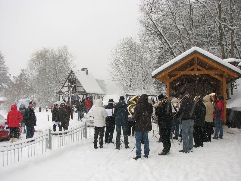 Vorweihnachtliche Musik, selbstgebackene Plätzchen, der tiefverschneite „Backes“ und das Spiel der Schneeflocken  – das passte perfekt zusammen! Der schon traditionelle Vortrag adventlicher Musik durch den Posaunenchor Langenholdinghausen am 2. Advent fand am 5. Dez. 2010 erstmals am „Zinnwald“ statt.