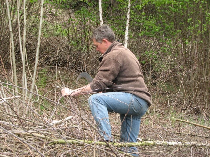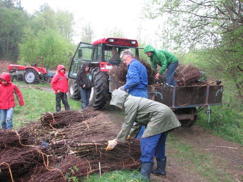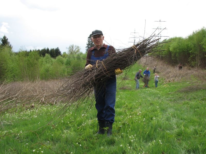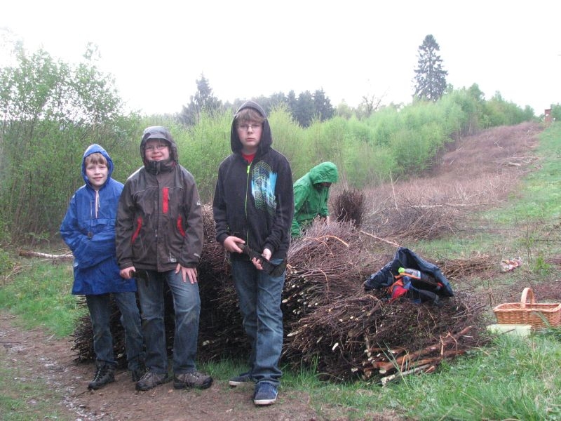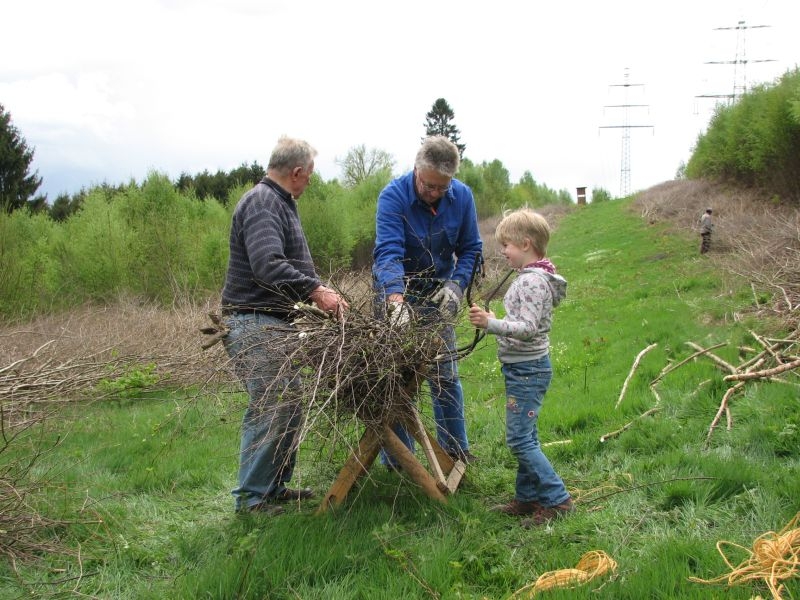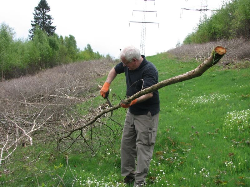 In jedem Frühjahr zieht es die Helfervom Arbeitskreis zur Ergänzung der Schanzenvorräte in den Wald. Diesmal war der 11. Mai als Termin für das gemeinsame Schanzenmachen vereinbart worden. Geeignetes Gehölz für gut brennende Schanzen findet sich erfahrungsgemäß auf den Flächen unterhalb der Hochspannungsleitungen, da diese in regelmäßigen Abständen frei geschnitten werden müssen.