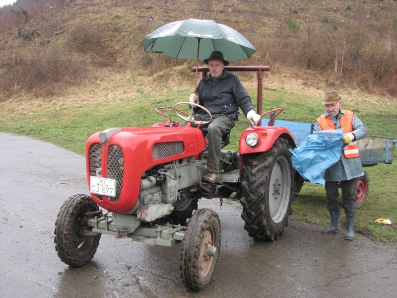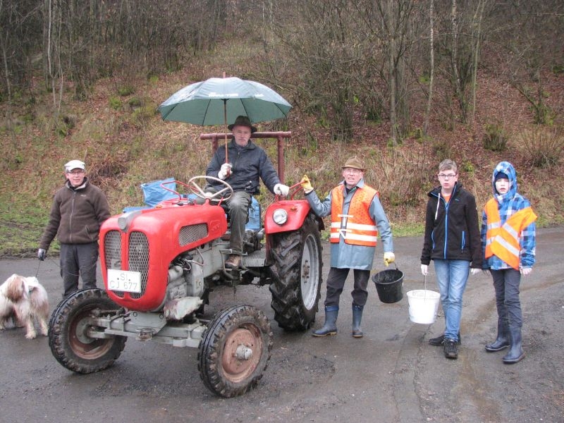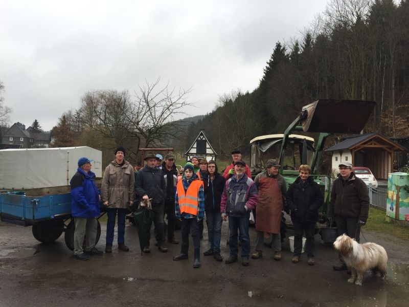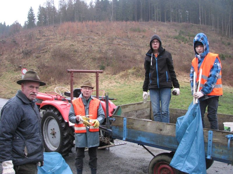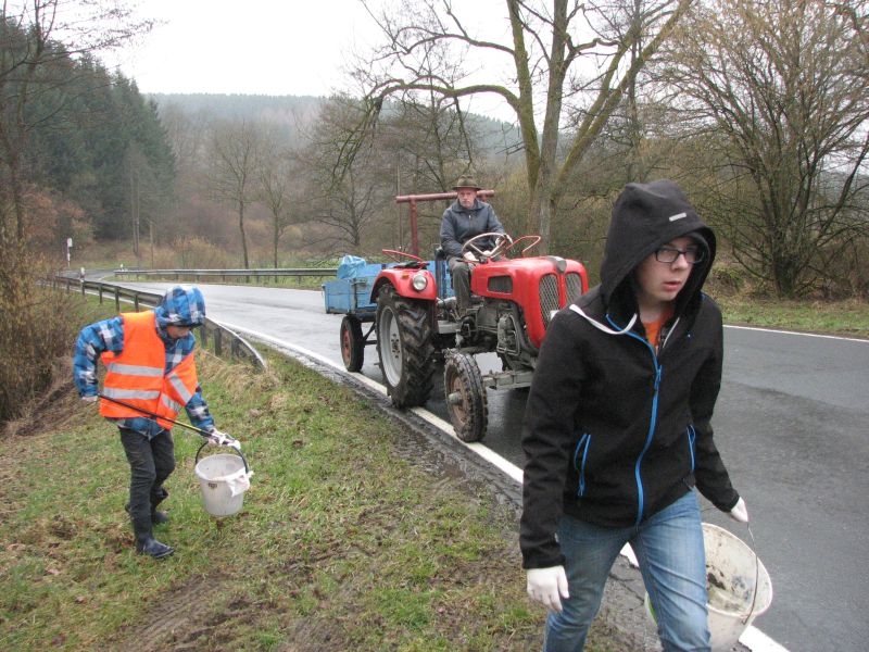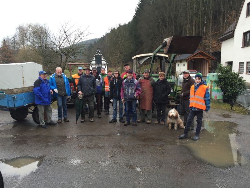 Insgesamt 20 Helfer trafen sich am Samstag, dem 21. März 2015, am Backes um gemeinsam die nördlichen Bereiche der dörflichen Flur von allerlei Unrat zu befreien. Verteilt auf drei Gruppen mit je einem Traktor und Anhänger wurden Straßen und Wege abgefahren und der angetroffene Unrat