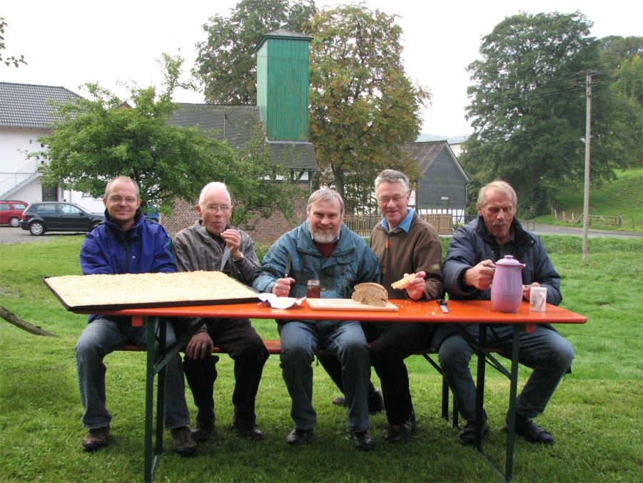 Mehr als 200 Brote waren die Bilanz des zweiten diesjährigen Backtages am 20. Sept. 2008 im Backes am Zinnwald. Drei Tage lang hatten die Bäcker des Arbeitskreises den Steinofen vorgeheizt, am Samstag wurden dann um 7.00 Uhr die ersten und um 15.00 Uhr die letzten Brote eingeschossen. Schnell ausverkauft war auch der frisch aus dem Ofen kommende Streuselkuchen. Manch ein Besucher beschränkte sich nicht allein auf eine kurze Stippvisite zur Abholung des Brotes, allzu einladend war nämlich das Wetter, die aufgestellten Bänke und die gute Atmosphäre rund um den Backes.